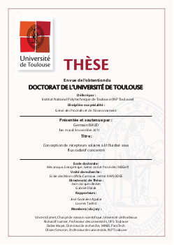 Beam down concentrator ; Sensitivities estimation ; Central receiver system ; Swarm-based optimization ; Concentrated solar power ; Radiative transfer ; Concentrateur beam down ; Estimation de sensibilités ; Transfert radiatif ; Energie solaire concentrée ; Optimisation par essaim particulaire ; Centrale solaire à récepteur central
