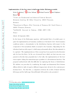 In the frame of the Boltzmann equation, wall-bounded flows of rarefied gases require the implementation of boundary conditions at the kinetic level, such as diffuse reflection. Such boundary conditions induce a discontinuity in the distribution function with respect to the component of the momentum which is normal to the boundary. In this paper, we present the procedure for the implementation of the force term in lattice Boltzmann models based on half-range quadratures. We validate our construction by considering one-dimensional flows between diffuse-reflective boundaries of equal or different temperatures which are driven by a constant force. A comparison between the conventional full-range Hermite model and the half-range Gauss-Hermite model is also presented.